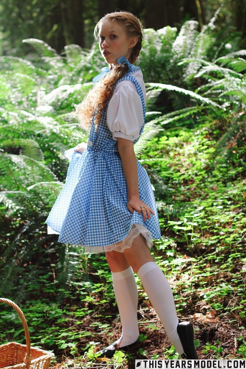 Cute redhead Dolly Little gets naked in white socks while in a forest-04